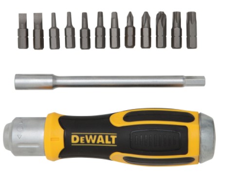Wkrętak z grzechotką DEWALT® jest wyposażony w oszczędzający miejsce schowek w rękojeści pozwalający na przechowywanie 12 końcówek narzędziowych. Produkt jest również wyposażony w solidny mechanizm grzechotkowy idealnie nadający się do zastosowań z wysokim momentem obrotowym.