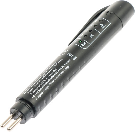 Tester pozwala na szybkie i wygodne sprawdzenie zawartości wody w płynie hamulcowym. Podstawowym parametrem określającym jakość płynu hamulcowego jest temperatura wrzenia, która z kolei jest ściśle związana z zawartością wody. Zawartość wody na poziomie ok. 3.5% obniża temperaturę wrzenia płynu o ok. 100°C. Płyn hamulcowy ma silne właściwości higroskopijne dlatego tak ważna jest okresowa kontrola jego jakości. Zasada działania testera opiera się na pomiarze zawartości wody w płynie hamulcowym. Płyn hamulcowy nie powinien zawierać więcej niż 1.5% wody, warunkowo dopuszczalna jest zawartość wody do ok. 3%, powyżej tej wartości płyn hamulcowy należy bezwzględnie wymienić.