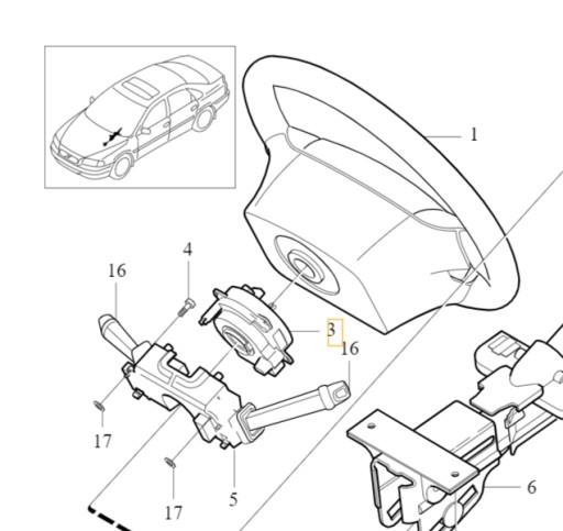 VOLVO S60 V70 XC70 tasma czujnik kata skretu SAS 3