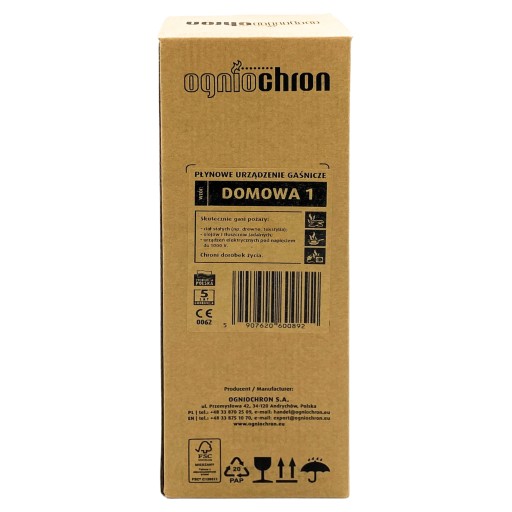 ⭐ Gaśnica renomowanej firmy Ogniochron, która wykorzystuje nietoksyczne i ekologiczne środki gaśnicze.