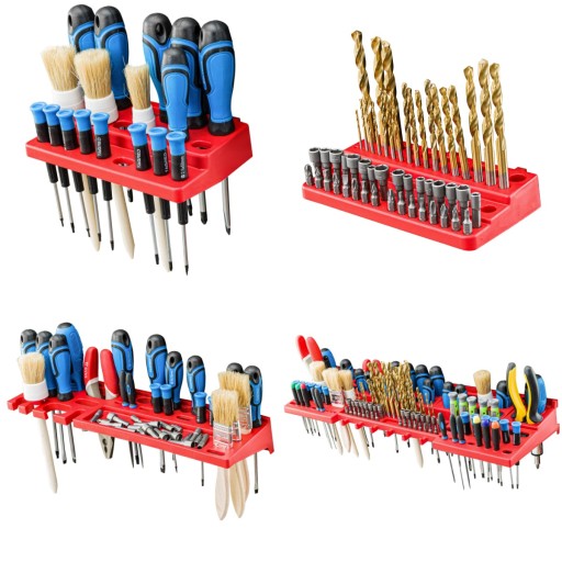 Świetny dodatek stanowią wytrzymałe uchwyty i półki narzędziowe pomagające przechowywać dłuższe narzędzia tj. młotek, wiertła, klucze, śrubokręt czy kombinerki. Dzięki uchwytom najważniejsze narzędzia będą zawsze pod ręką i zajmą znacznie mniej miejsca w warsztacie. Praktyczne oraz świetnie wyglądające rozwiązanie.