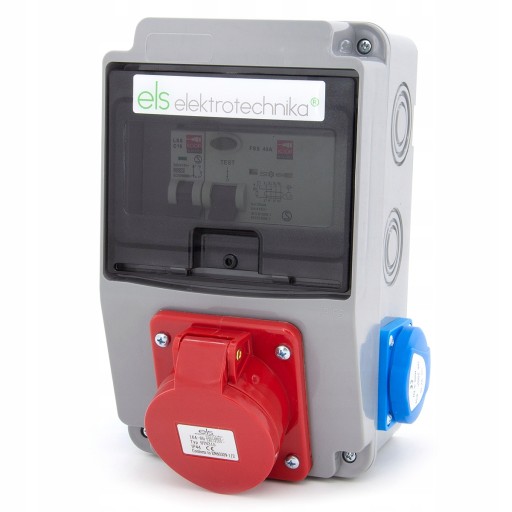 ✅ 1 x gniazdo skośne 16A 5P 400V IP44 w pełni okablowane,