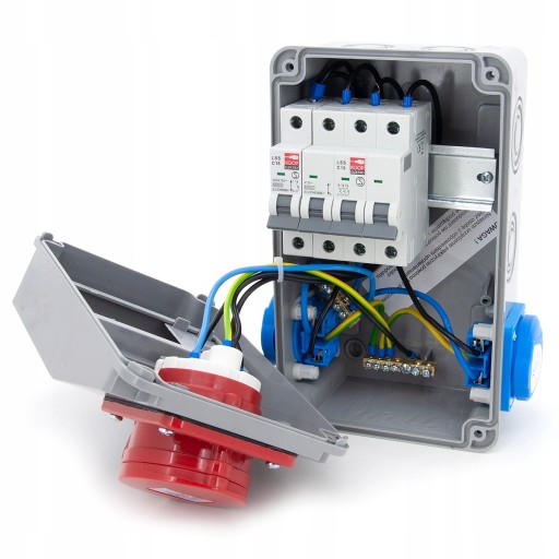 ✅ 1 x gniazdo skośne 16A 5P 400V IP44 w pełni okablowane i zabezpieczone C16 3P.