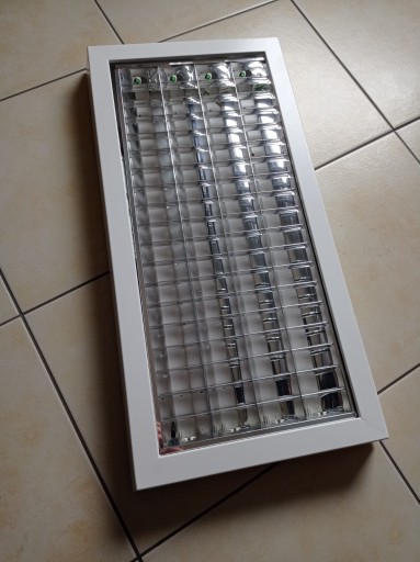 Przedmiotem aukcji jest oprawa oświetleniowa typu raster ze statecznikiem elektronicznym EVG na cztery świetlówki 14W T5, trzonku G5, mocy 14W.