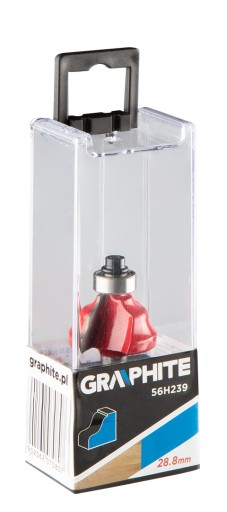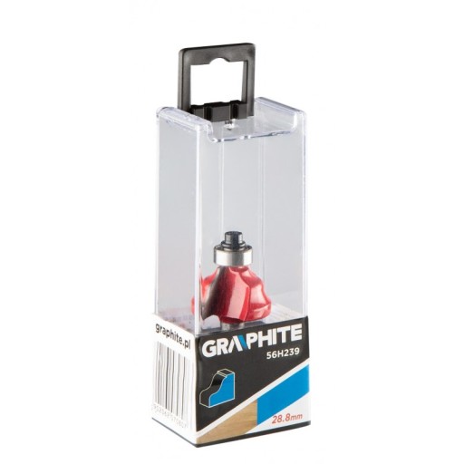 Frez kształtowy z łożyskiem, ozdobny, HM, 28.8 x 15.9 mm, trzpień 8 mm GRAPHITE (nr ref. 56H239) przeznaczony do precyzyjnej obróbki m.in. drewna, PCV, płyt wiórowych przy pomocy frezarek górnowrzecionowych. Głowica wyposażona została w płytki skrawające wykonane z węglika spiekanego. Frez wyposażony został w łożysko, które ułatwia prowadzenie frezarki.
