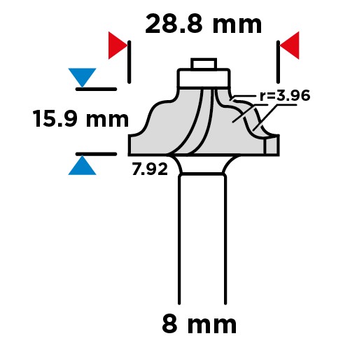 Frez kształtowy z łożyskiem, ozdobny, HM, 28.8 x 15.9 mm, trzpień 8 mm, GRAPHITE 56H239