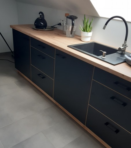 - - kolor frontów szafek dolnych: czarny mat (laminat),