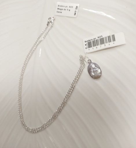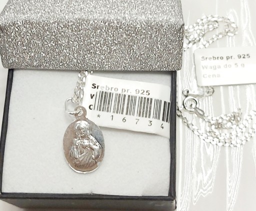 Medalik z wizerunkiem Matki Boskiej Szkaplerznej z łańcuszkiem wykonany ze srebra próby 925