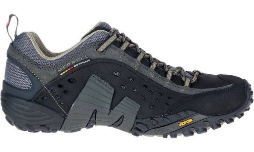 MERRELL INTERCEPT - model z cholewką wykonaną z wysokiej jakości skóry nubukowej i materiałów tekstylnych. Wzmocniona przednia część buta sprawią, że miejskie niespodzianki w postaci wysokich krawężników, nierównych chodników, nie będą dla Ciebie przeszkodą.