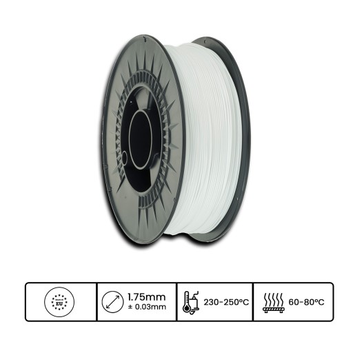 Filament 3DPower Basic PETG to bardzo popularny materiał do druku 3D. Jest idealny dla użytkowników, którzy chcą drukować funkcjonalne części. Jego popularność wynika przede wszystkim z faktu iż łączy właściwości zarówno PLA jak i ABS, oraz jest stosunkowo prosty w drukowaniu, a przy tym wytrzymały mechanicznie. Filament PETG jest produkowany z komponentów dopuszczonych do kontaktu z żywnością. Podlega w 100% recyklingowi.