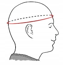 Obwód głowy mierzymy około 1 cm nad brwiami i 2 cm nad uszami.
