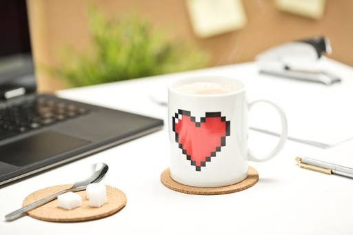 Gadżet bliski sercu każdego maniaka komputerowego, który z rozrzewnieniem wspomina czasy 8 bitowych gier, a teraz z zaciekawieniem spogląda na kwadratowy świat Minecrafta. Pikselowe serce zmieni swój czarny kolor na właściwy czerwony po zalaniu kubka gorącą wodą.
