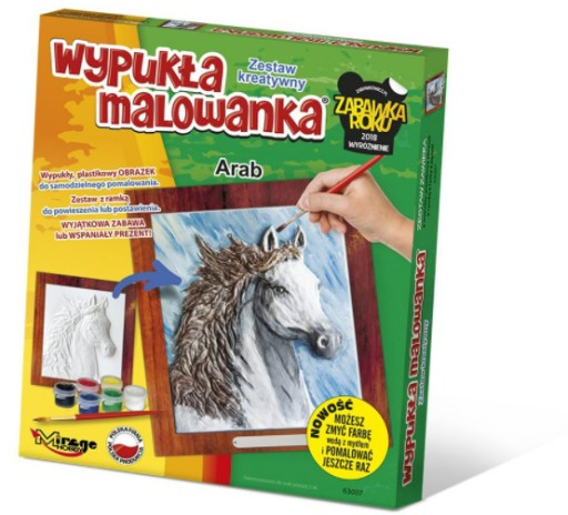 Obrazek pupila w Zestawach Kreatywnych Mirage Hobby, to wypukła wytłoczka 3D. Ponieważ jest ona wykonana z plastiku, możliwe jest umycie obrazka ciepłą wodą z mydłem i powtórne jego pomalowanie. Dzięki temu można poprawiać i dopracowywać swoje dzieło do uzyskania pożądanego efektu.