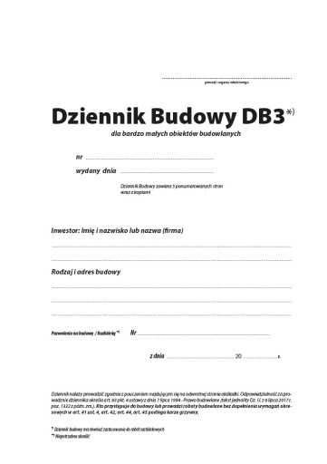 Na innej naszej aukcji dostępny jest dziennik budowy w wersji jednostronnej:
