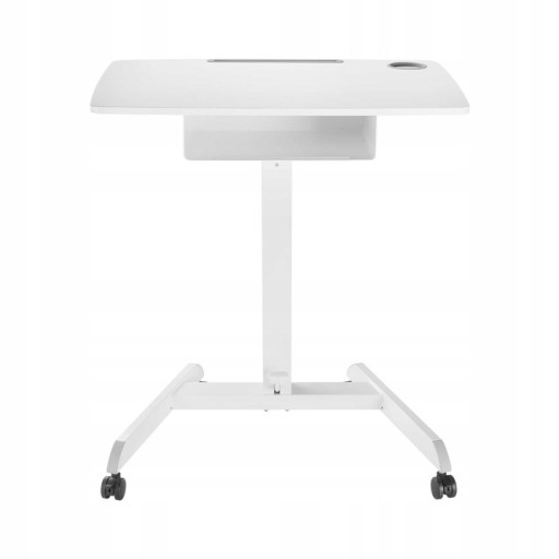 Uniwersalne biurko z pedałem do regulacji wysokości. Stół jest nie tylko praktyczny, ale także zajmuje mało miejsca – dobre rozwiązanie dla większej swobody w miejscu pracy.