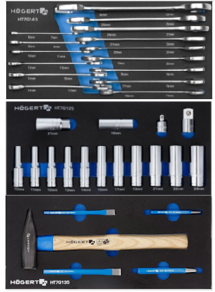 - ⏩ HT7G128 Zestaw narzędzi z grzechotką 1/2", 23 szt., wkład EVA