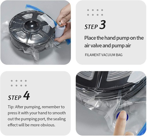 Idealny do utrzymywania wszystkich włókien wolnych od wilgoci i pył, zwłaszcza Petg, który cierpi z absorpcji wilgoci. Jego użycie jest bardzo proste i doskonale uszczelki w próżni.