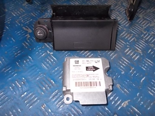Opis: główna, kokpit, czarny, z drewnopodobnymi wstawkami, kilka rys, z kratkami nawiewu, schowkiem, panelem klimatyzacji i nawiewu, popielniczką z zapalniczką, włącznikiem świateł, licznikiem GM90561456QR, poduszką kierowcy w kierownicy wielofunkcyjnej (zdarte przyciski od klaksonu), poduszką pasażera GM 90561101, sterownikiem poduszek GM 90180799 (G,1.8MPi,16V,85kW,116KM,ABS,klima,5d H/B,kod silnika X18XE1) -jakość A && OPEL ASTRA G KOKPIT DESKA PODUSZKI KIEROWNICA