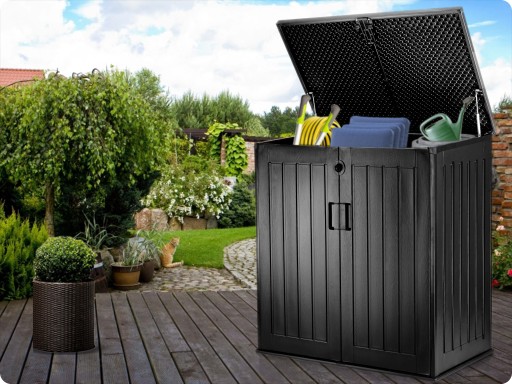 Pojemna skrzynia ogrodowa ułatwia przechowywanie w ogrodzie, na balkonie oraz wokół domu niezbędnych rzeczy które użytkujemy na co dzień (poduszki, materace, pokrowce, zabawki, narzędzia) oraz wiele innych rzeczy.