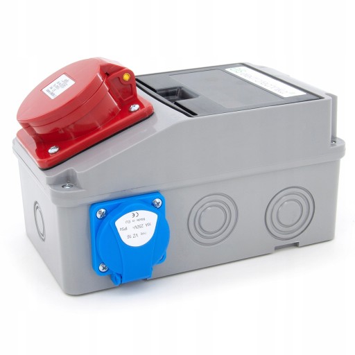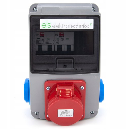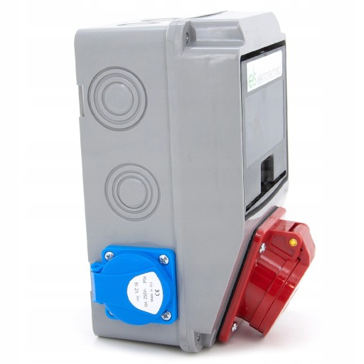✅ 1 x gniazdo skośne 16A 4P 400V IP44, w pełni okablowane i zabezpieczone C16 3P,