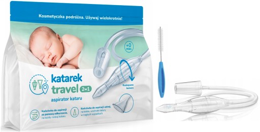 Katarek Travel to urządzenie, dzięki któremu skutecznie, szybko i bezpiecznie odciągniesz zalegający w nosku dziecka katar.