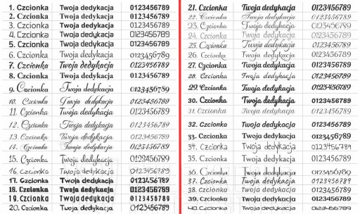 UWAGA! Jeżeli czcionka nie zostanie wskazana przez klienta po zakupie - zostanie dobrana tak jak jest to na wybranym wzorze wazonu.
