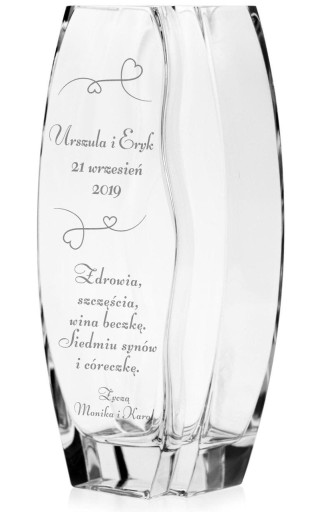 - treść graweru: na górze wazonu: Kasia i Andrzej, 30 lipca 2019, na dole wazonu: życzą Krystyna z Rafałem