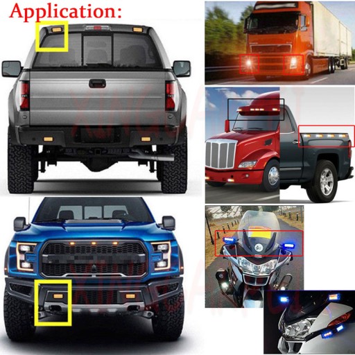 Ostrzegawcze światła stroboskopowe uniwersalne pasują do wszystkich pojazdów z DC 12 V-24 V do samochodów, ciężarówek, quadów, SUV, wozów strażackich, samochodów policyjnych, pojazdów ratowniczych itp. Zainstalowane na przednim/tylnym zderzaku, przedniej szybie, znacznikach bocznych, świetle tylnym, światła przeciwmgielne