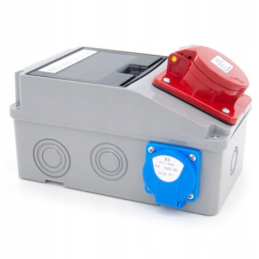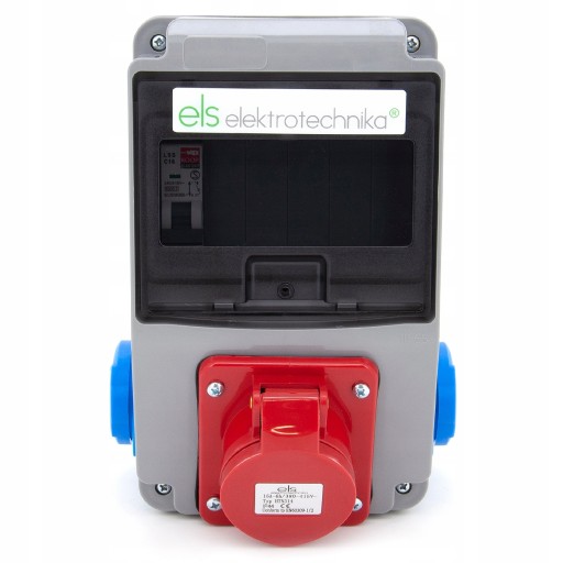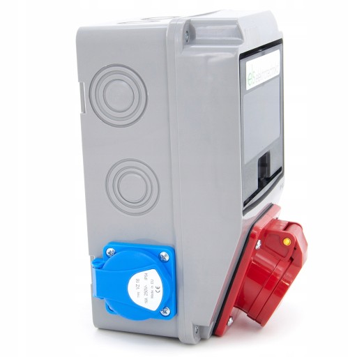 ✅ 1 x gniazdo skośne 16A 5P 400V IP44, w pełni okablowane.