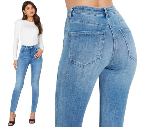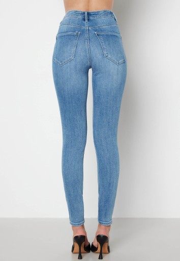 - Bardzo modne damskie spodnie wyszczuplające w kolorze jasnego jeansu