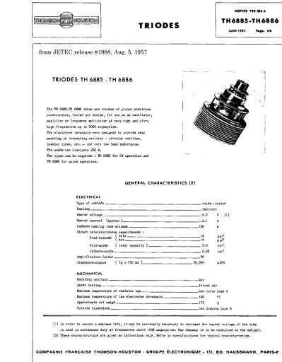Oferujemy Państwu triodę nadawczą typu TH021A produkcji francuskiej firmy Thomson.