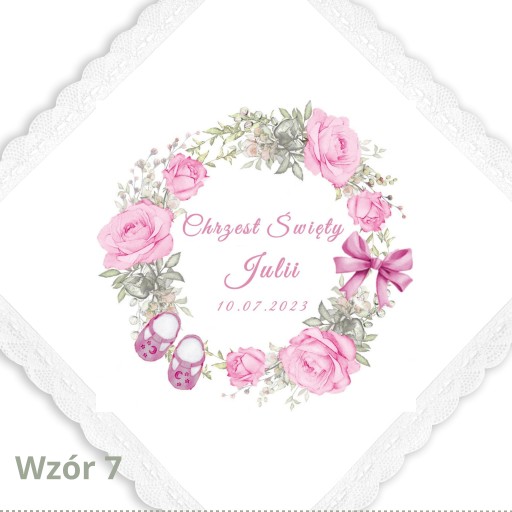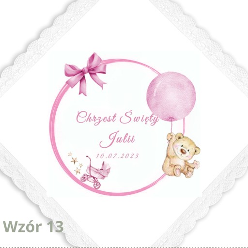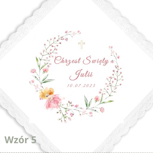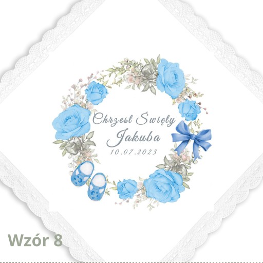Każdy produkt przygotowujemy na zamówienie, ręcznie ozdabiamy oraz umieszczamy na nim imię Dziecka oraz datę chrztu.
