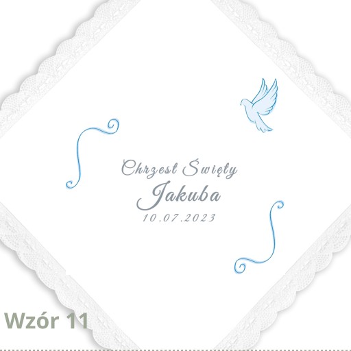 - jeżeli na szatce imię dziecka ma być odmienione to należy podać właściwą formę. W przypadku braku informacji umieścimy imię jak na świecy (w mianowniku).