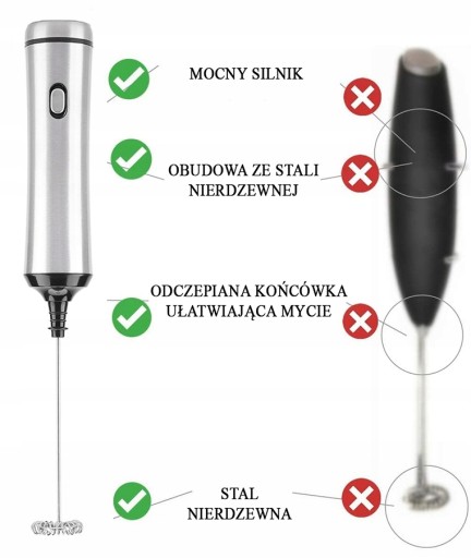 Akumulatorowy spieniacz ze stali nierdzewnej z dwustopniową regulacją prędkości