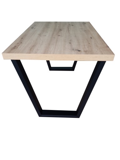 Stół Loft z prostokątnym blatem. Blat stołu został wykonany z płyty laminowanej. Obrzeże stołu oklejone grubą okleiną PCV dzięki czemu brzegi stołu są zabezpieczone przed uszkodzeniami. Nogi stołu wykonane z mocnej stali malowane proszkowo. Stół bardzo masywny i stabilny. Cała konstrukcja jest doskonale zaprojektowana i gwarantuje długie i bezpieczne użytkowanie. Wychodząc naprzeciw oczekiwaniom współczesnego klienta stół ma możliwość rozłożenia blatu na prowadnicach łożyskowych i wstawienia dodatkowych wkładek, które nie chowają się w stole i należy je przechowywać oddzielnie.
