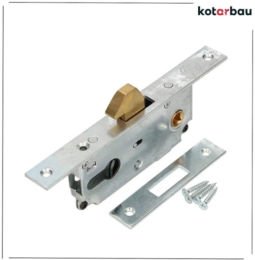 - Zamek do drzwi przesuwnych ma stalową budowę odporną na uszkodzenia mechaniczne.