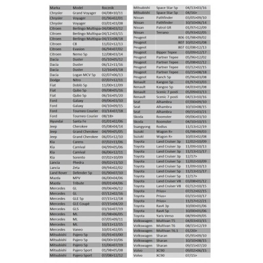 Kratka pasuje do modeli aut: