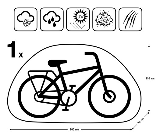 - pokrowiec rowerowy na 1 rower (długość- 200cm; szerokość- 80cm; wysokość- 110cm)