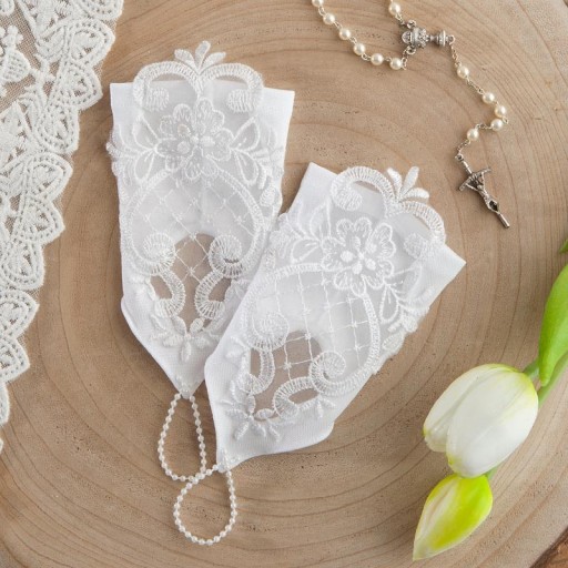 - rękawiczki będą wspaniałym uzupełnieniem kreacji dziewczynki podczas I Komunii Świętej, idealnie będą pasować do białej sukienki lub alby