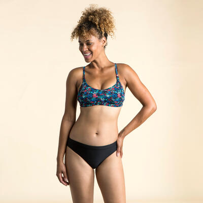 Stworzyliśmy ten kobiecy dół stroju kąpielowego dla pływaczki uczącej się pływać i pragnącej czerpać korzyści z aktywności w wodzie. Szukasz stroju do swobodnego pływania? Oto dół stroju kąpielowego o kroju zabudowanych majtek z szeroką gumką i tasiemką ściągającą, zapewniającą spokój podczas pływania.
