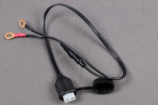 Kabel do bezpośredniej instalacji przy motocyklu. Wodoszczelne gniazdo umożliwia łatwe podłączeni i odłączenie motocykla do prostownika.