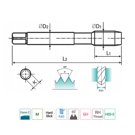 Gwintowniki produkowane są z luka wiórową skrętną do otworów nie przelotowych.