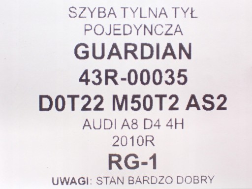 ЗАДНЕЕ СТЕКЛО GUARDIAN M50T2 AS2 2010R A8 D4 4H