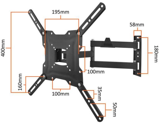 - Uchwyt Jest kompatybilny ze standardem VESA max. 400 x 400 mm, dopasowany do telewizorów LCD o wymiarach 17 – 47 cali.