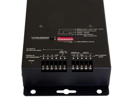 - możliwość połączenia kilku sterowników w trybie master/slave aby w pełni zsynchronizować wiele projektorów RGB LED