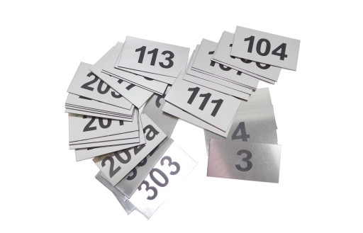 Po dokonaniu zakupu prosimy o informację o numerze, preferowanym kolorze laminatu i czcionce oraz czy życzą sobie Państwo otwory, czy taśmę dwustronną.