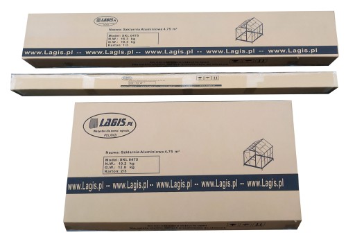 - ✅ Szklarnię aluminiową o powierzchni: 4,75m2 w 2 kartonach