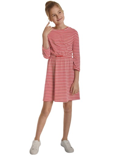 Bawełniana sukienka z długim rękawem w modne paski od marki YoungStyle. W pasie elastyczna gumka zdobiona kokardką. Wykonana z przyjemnej w dotyku dzianiny. Wygodny, luźny krój zapewnia swobodę ruchu. Idealna do noszenia zarówno na co dzień, jak i na specjalną okazję. Okrągły dekolt.