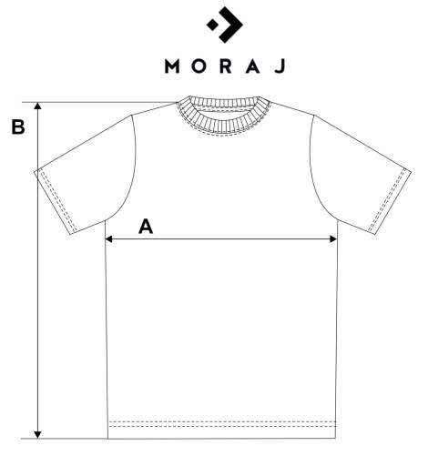 Przy szyi wszyte zostały taśmy mocujące, które są jednocześnie ozdobą i zwiększają żywotność T-shirtu. Model posiada okrągły dekolt.