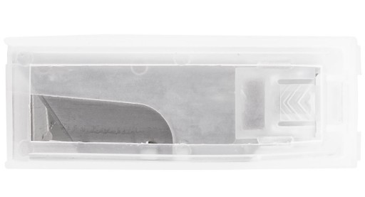 Magazynek mieszczący 5 sztuk ostrzy znajduje się w podstawie noża i jest blokowany za pomocą przycisku znajdującym się na grzbiecie nożyka.